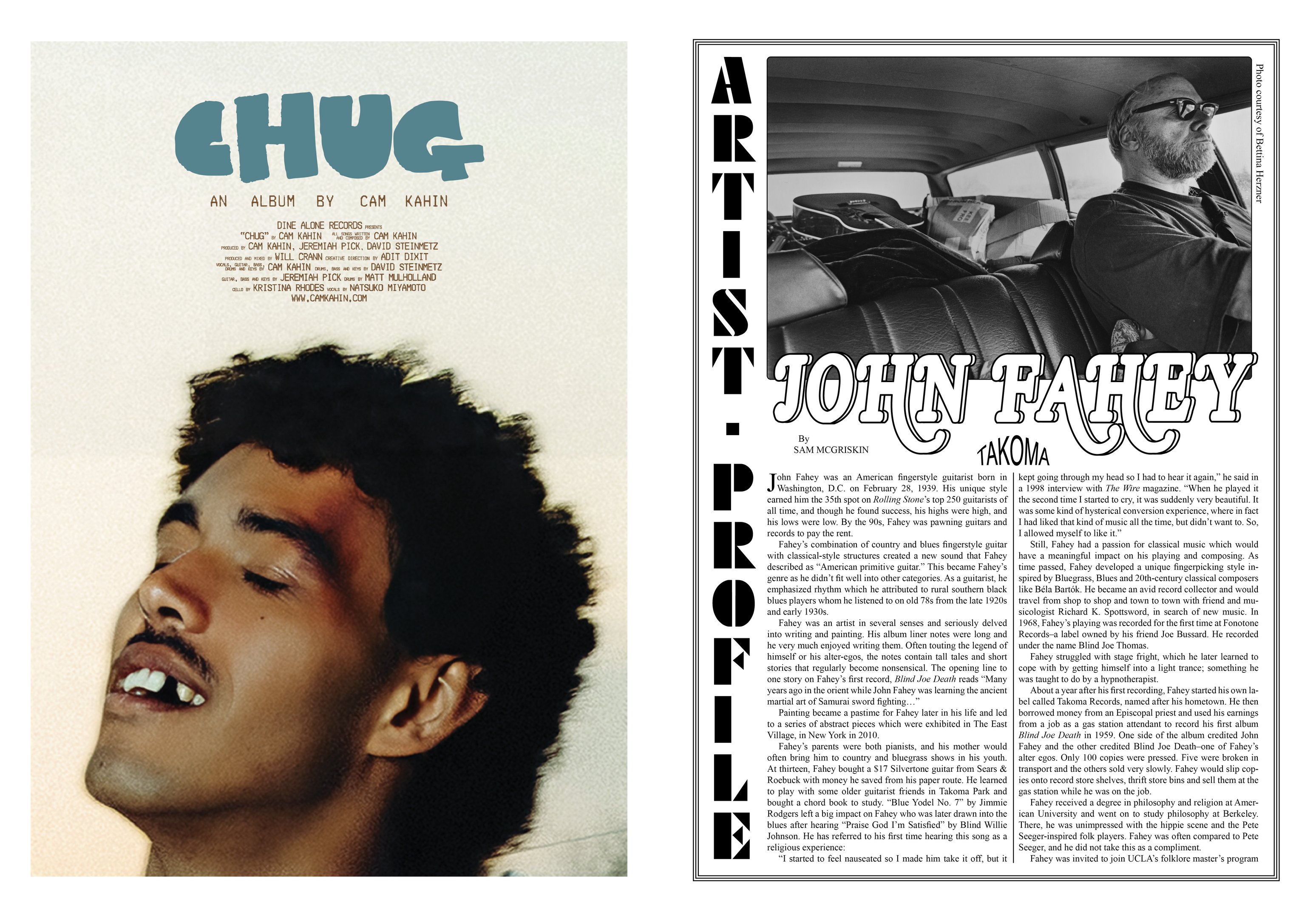 “I’ve always really thought of myself as a spiritual detective and a psychological detective,” said Fahey to Byron Coley for that Spin Magazine article, “I guess with my music I’m always trying to get to a fuller understanding of myself. I felt so alienated from the culture around me, like I was from a different planet, like I wasn’t really a member of the human race. I had two heads, one just wasn’t visible. So I was looking for another path of music. I didn’t really know what it was. I didn’t care what it was and I still don’t. Makes no difference to me and that’s perfectly okay. ‘Cause I’m just a little blip. The whole style is just a little blip on all the mainstream of music. We don’t fit anywhere. And we never will.”