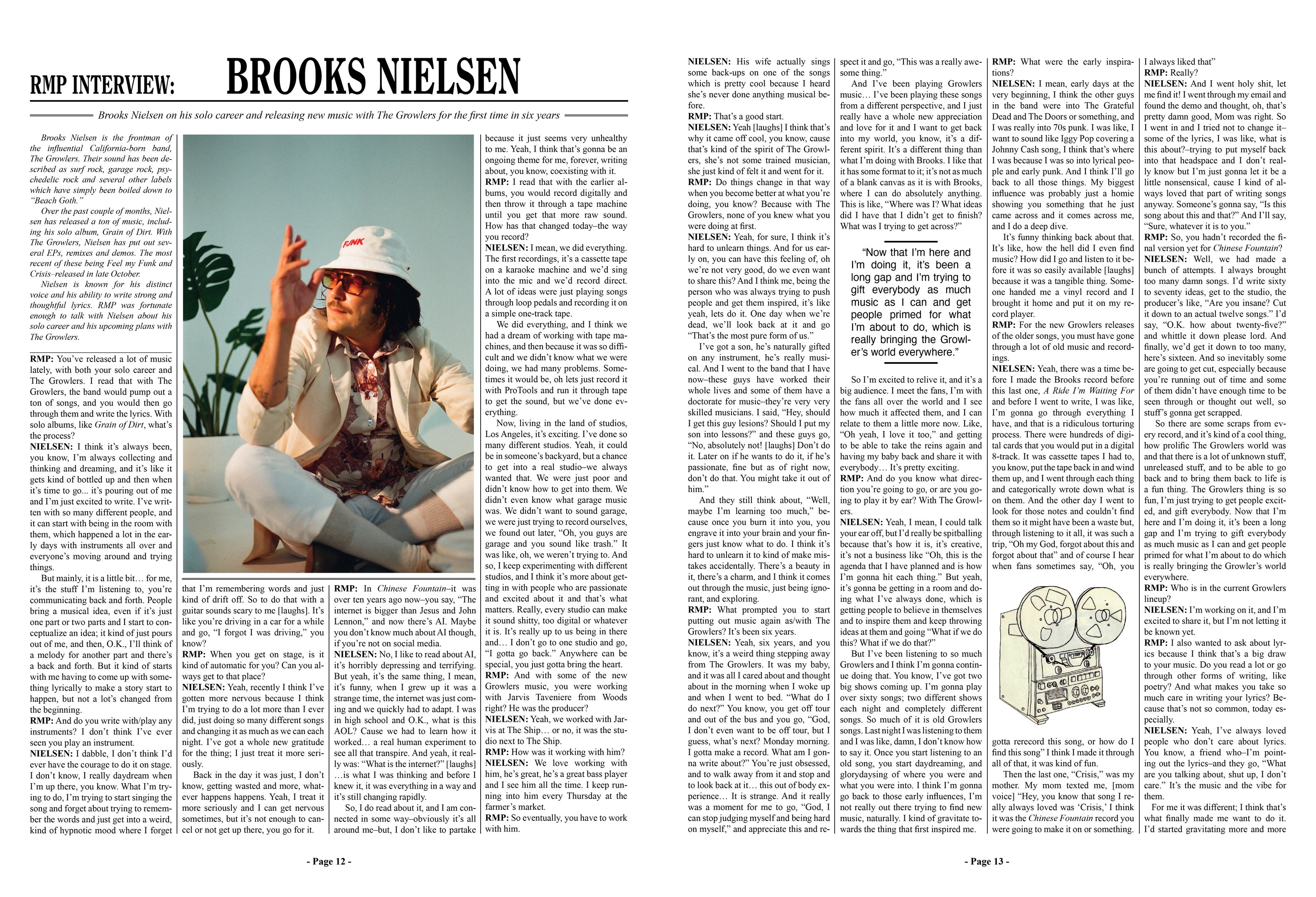 Nielsen is known for his distinct voice and his ability to write strong and thoughtful lyrics. RMP was fortunate enough to talk with Nielsen about his solo career and his upcoming plans with The Growlers.