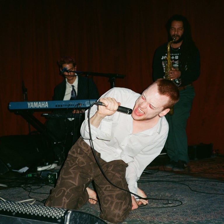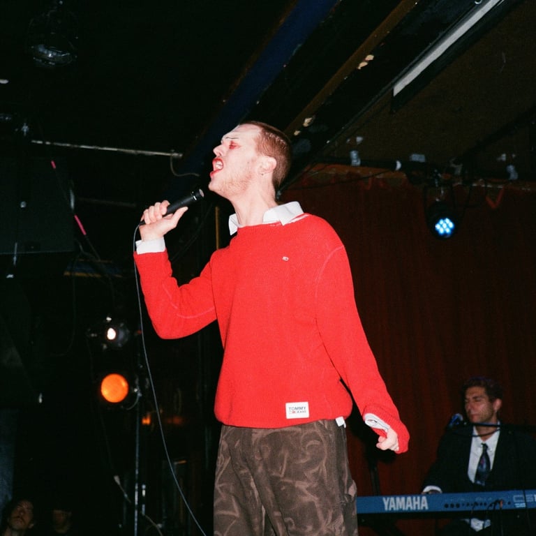 Fine Food Market kicked off the show as people began to pour in, and the crowd held a polite four-foot ring around the stage. Fine Food Market is the moniker of Sophie Perras, a classically trained pianist based in Montreal. She has a country-folk sound with some pop mixed in and lists Savage as one of her influences. Her lyrics are written in both English and French on her debut EP, I’m afraid to be in love with someone who crashes their car that much, which was released in May of 2025. Perras came up with–or stuck with–her band name after her iPhone demos were automatically labeled Fine Food Market due to her apartment's proximity to a grocery store.