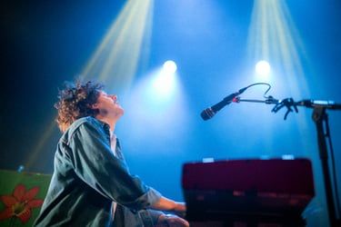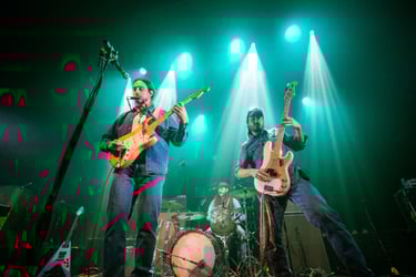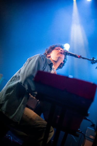 Halfway through their set and after several enthralling solos by Paquette, organ player Shamus Currie took the spotlight when performing his self-written song The Owl from their new album. Under blue lights, the crowd swayed to Currie's dreamy and psychedelic melody, which provided both a breather between energetic hits and the glue to their overall performance.